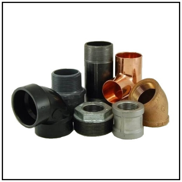 Waterline fittings, gas line fittings, shut-off valves, couplings, and threaded adapters.